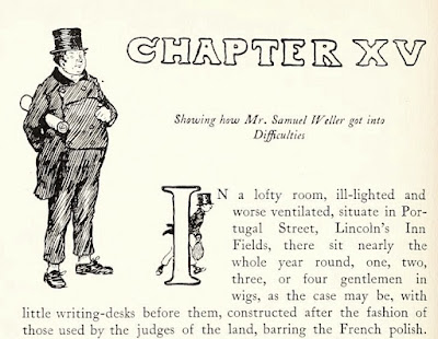 In einem hohen, schlecht erleuchteten und noch schlechter gelüfteten Raum der Portugal-Street, Lincoln's-inn-Fields, sitzen beinahe das ganze Jahr hindurch, wie es der jeweilge Fall erforfert, ein, zwei, drei oder vier Herren in Perücken...
