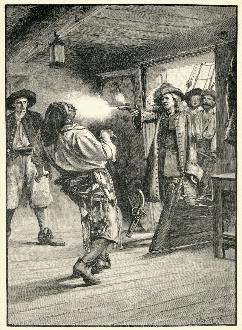 Der Maat schoss dem meuterischen Kapitän eine Pistolenkugel durch den Kopf.